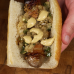 Finally, place your brat in a Bolillo roll and stack it with sauerkraut and the onion & jalapeño mixture. Top it with Dijon mustard for a mouthwatering acidic bite.